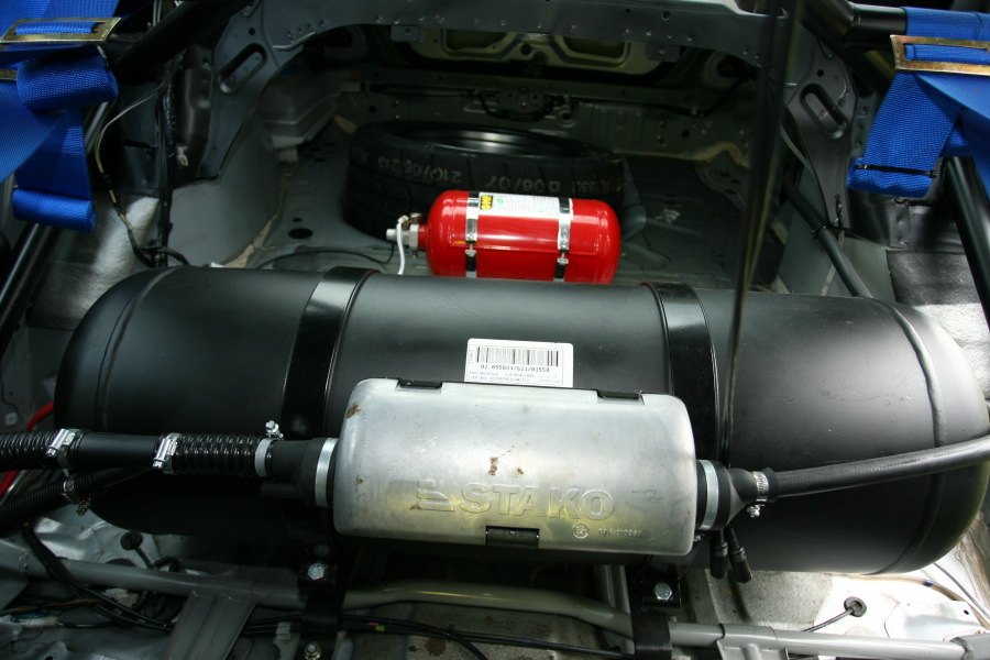 Das Gas wird dann durch eine Füllleitung in den Tank befördert. Dieser sitzt aus Sicherheitsgründen (wird vom AT-G Reglement so vorgeschrieben) innerhalb des Überrollkäfigs.